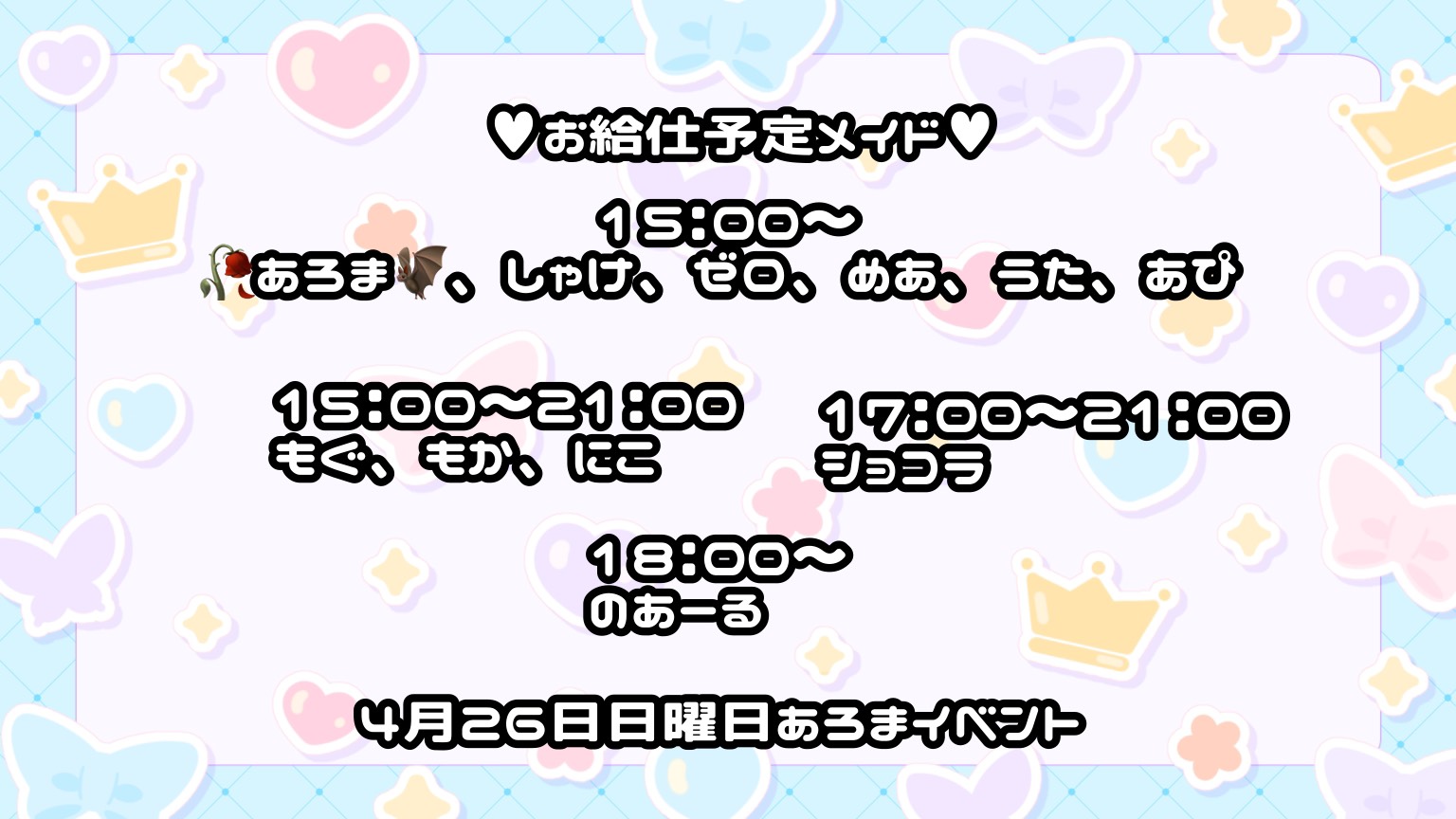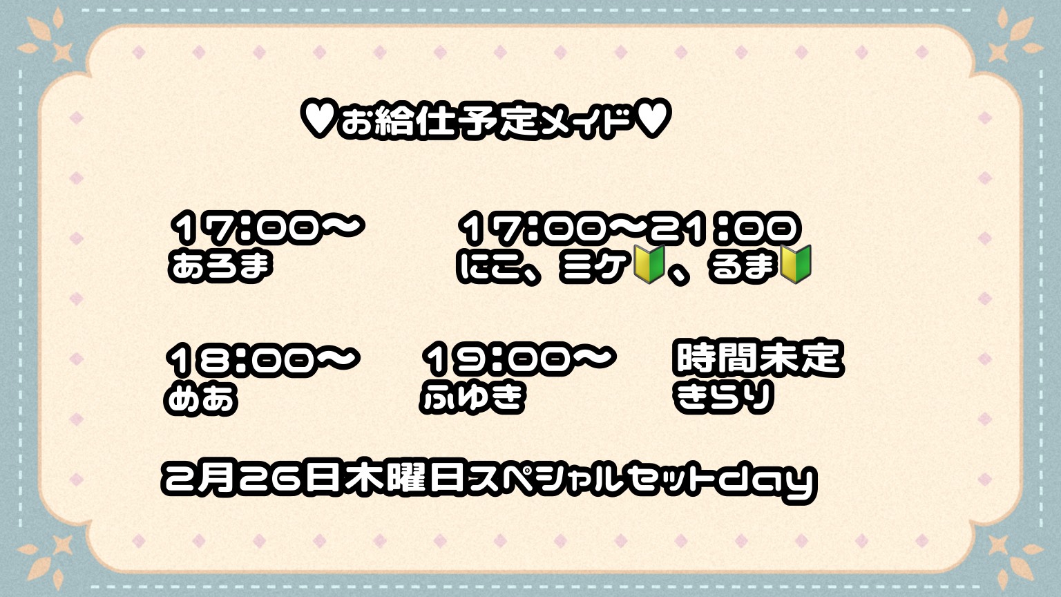 当店メイドさんは通常ウェートレス業務以外の過度な接客等は致しません。