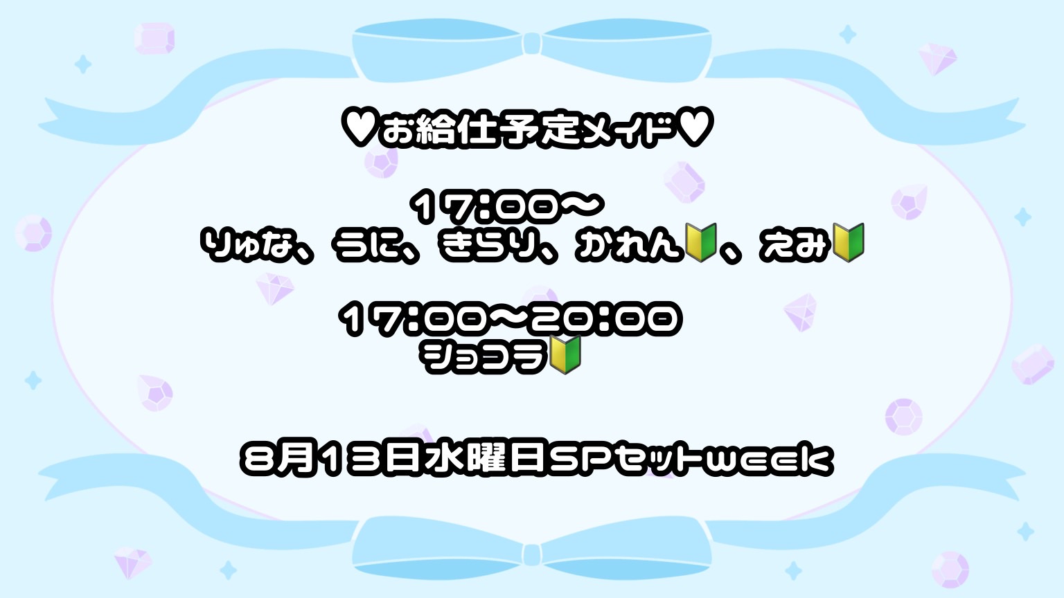 本日、8月13日(水曜日)のお給仕予定メイド !