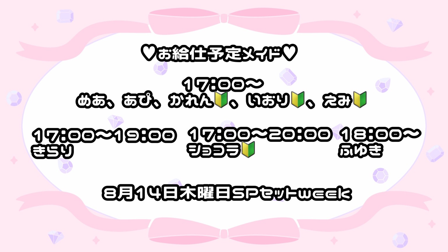 本日、8月14日(木曜日)のお給仕予定メイド ! - HeaRTS劇場ドン・キホーテ立川店