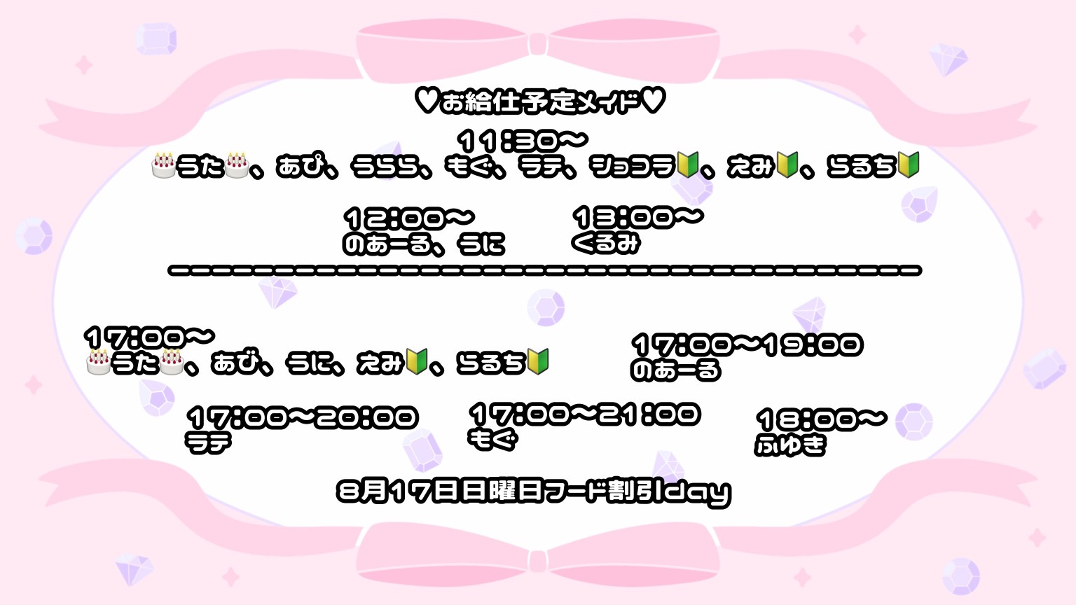 本日、8月17日(日曜日)のお給仕予定メイド !