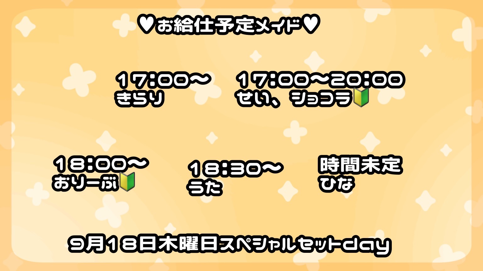 本日、9月18日(木曜日)のお給仕予定メイド !