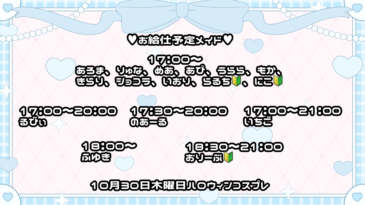 本日、10月30日(木 曜日)のお給仕予定メイド ! - HeaRTS劇場ドン・キホーテ立川店