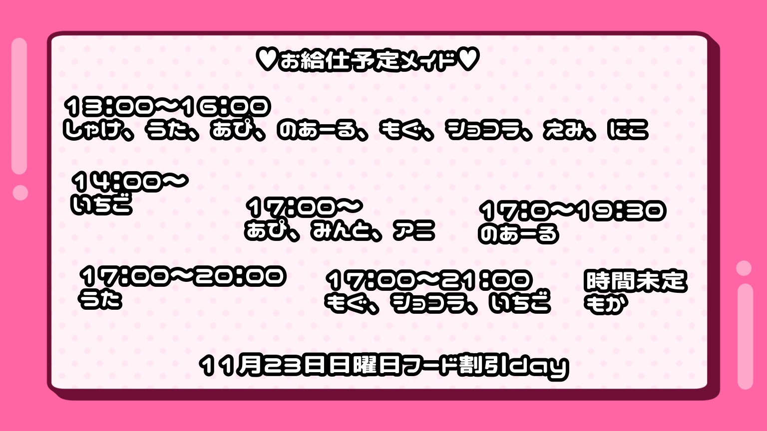 本日、11月23日(日曜日)のお給仕予定メイド !