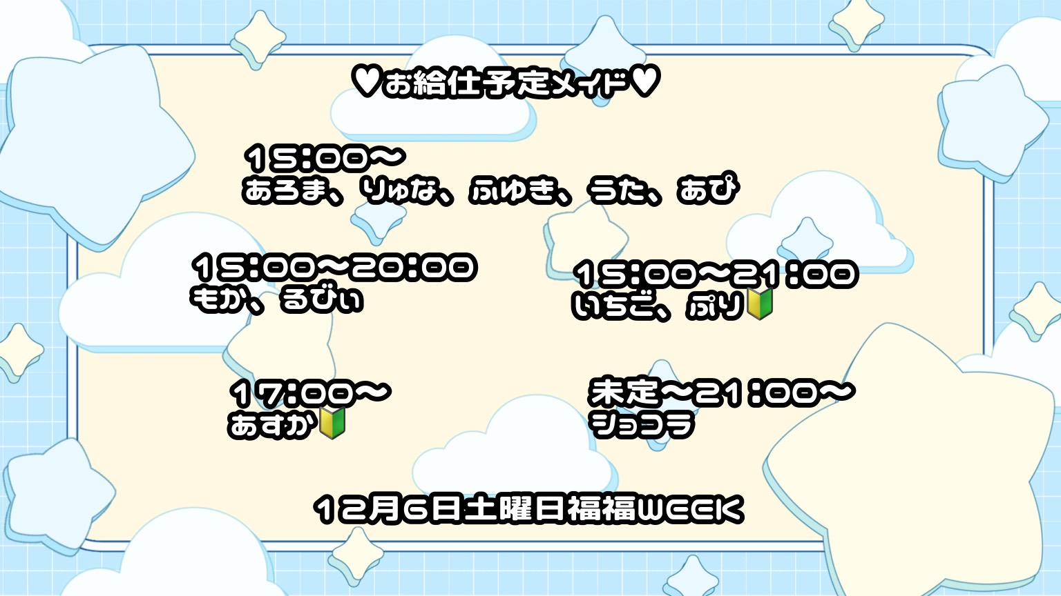 本日、12月6日(土曜日)のお給仕予定メイド !