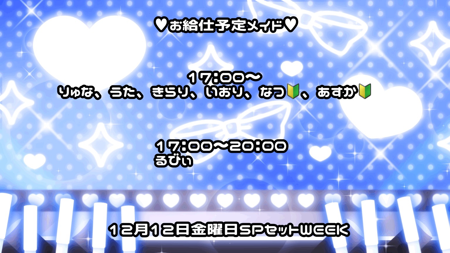 本日、12月12日(金曜日)のお給仕予定メイド ! - HeaRTS劇場ドン・キホーテ立川店