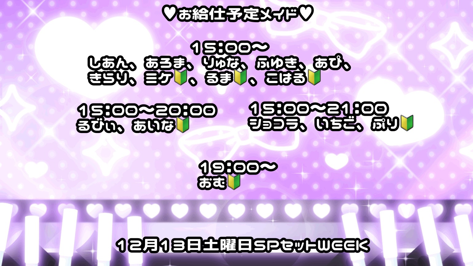 本日、12月13日(土曜日)のお給仕予定メイド ! - HeaRTS劇場ドン・キホーテ立川店