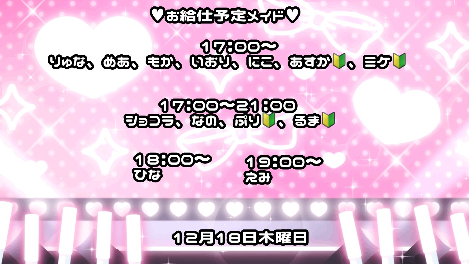 本日、12月18日(木曜日)のお給仕予定メイド ! - HeaRTS劇場ドン・キホーテ立川店