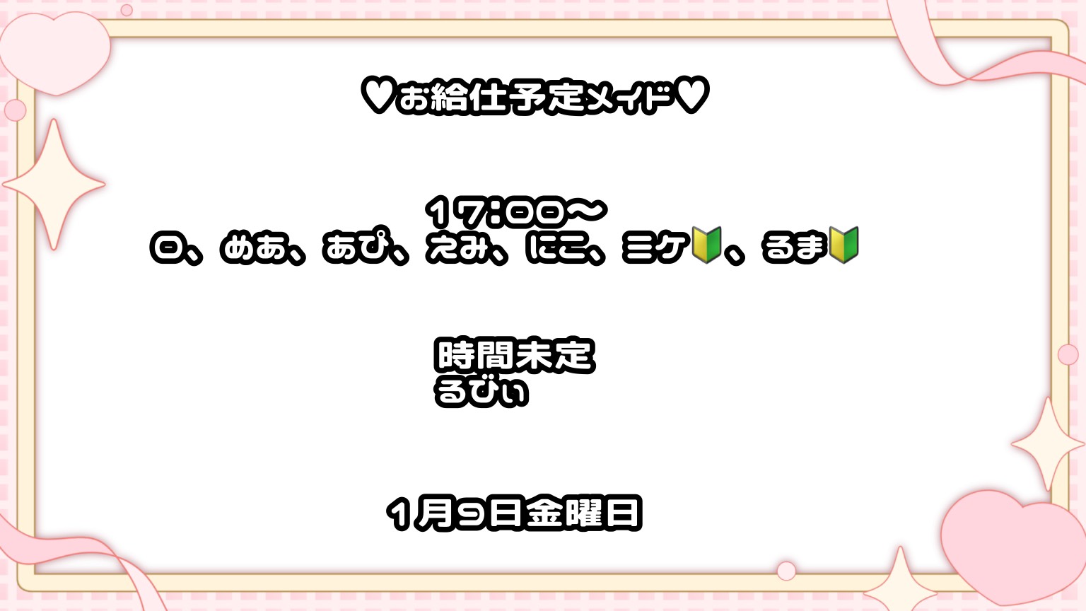 本日、1月9日(金曜日)のお給仕予定メイド !